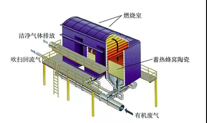 燃烧室是RTO的重要组成部分,其设计优劣直接决定了RTO的处理效率和达标情况,燃烧室的结构和尺寸大小受制于燃烧温度、停留时间及废气流量等因素。燃烧室的内衬材料一般为陶瓷纤维等耐火绝热材料,可以承受短时 1200℃的高温。